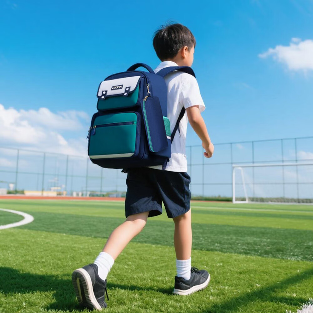 Edison小学生书包护脊减负反光大容量防泼水防下坠儿童背包2213-1蓝绿