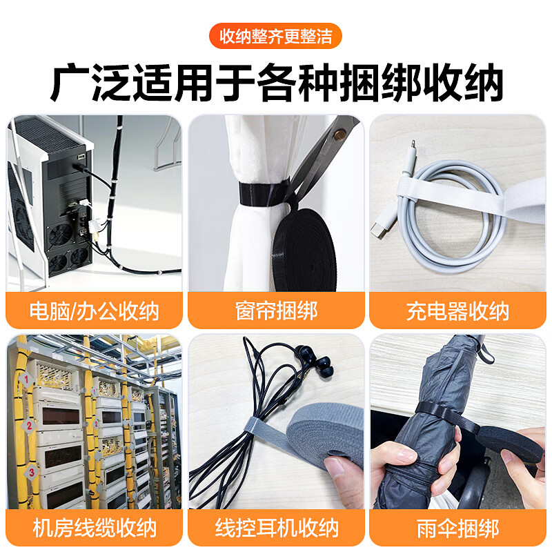 电脑理线器魔术贴桌面收纳固定整理免打孔绕线器电线网线电源线手机数据线多功能窗帘扎带自粘式 【任意裁剪】10米-黑色(5米两卷)