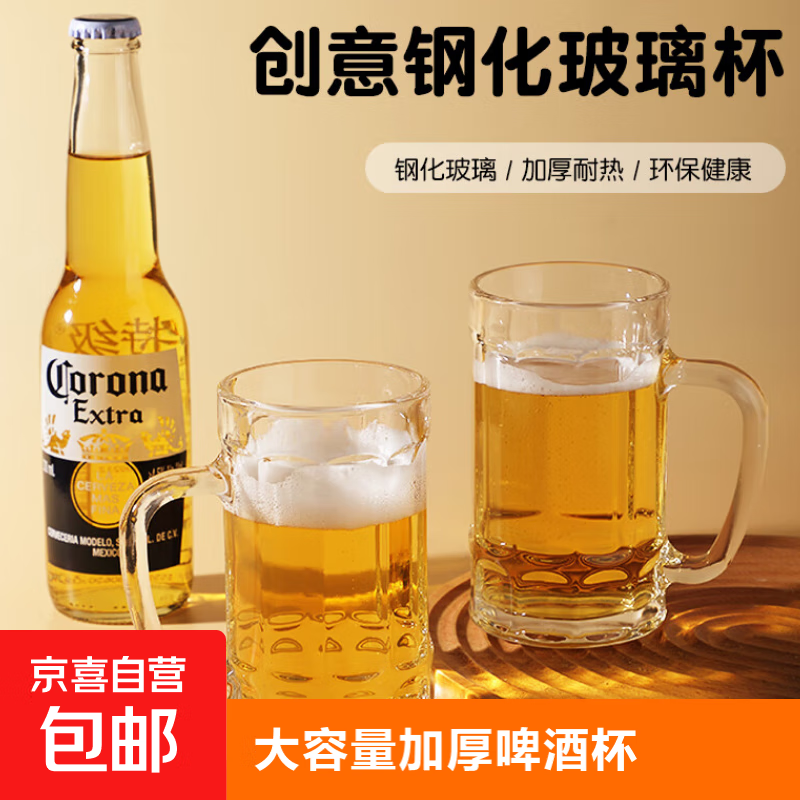 加厚啤酒杯大容量带把扎啤杯网红大号冷水玻璃杯子果汁杯水杯喝茶 啤酒杯 400ml 1只
