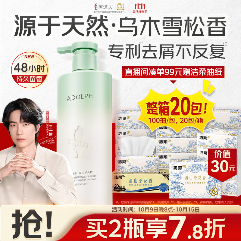 阿道夫王一博同款头皮去屑洗发水618ml 舒缓止痒 天然香植物香氛洗发露