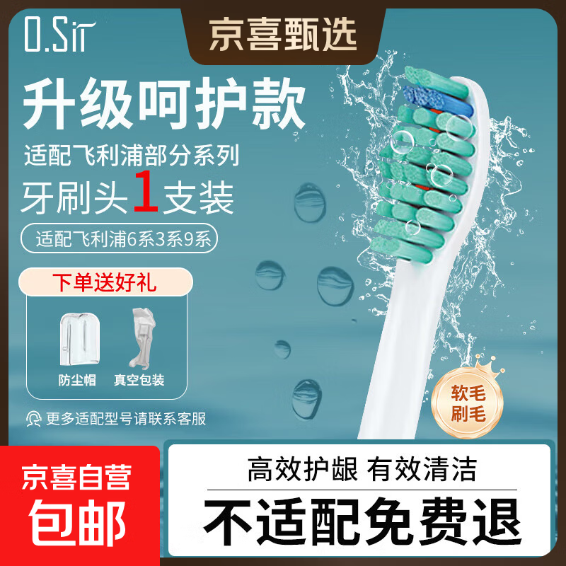 O.Sir适配飞利浦电动牙刷头适配HX6730/6511/3216/8962/8911/3226/9033/9021系列杜邦软毛 1支 【日常清洁型】适配6系3系