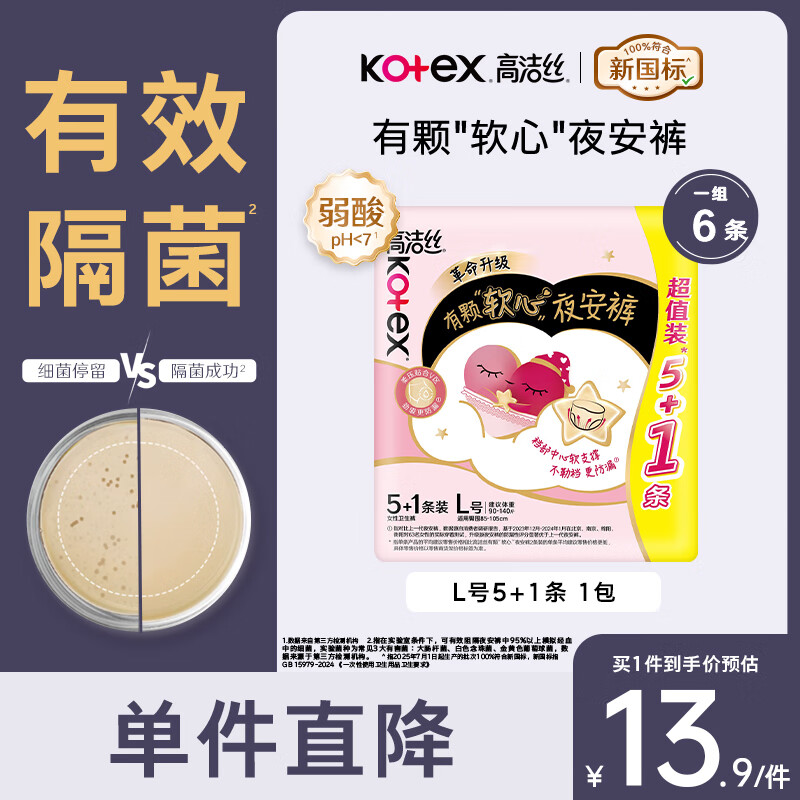 高洁丝安睡裤夜安裤L码女经期用防漏安心裤安全裤卫生巾 L 6条 100-140斤