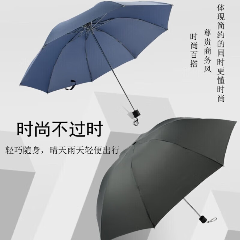 热销雨伞男女晴雨两用学生情侣黑胶三折防晒防紫外线遮阳伞 手动8骨 纯色雨伞(颜色随机)