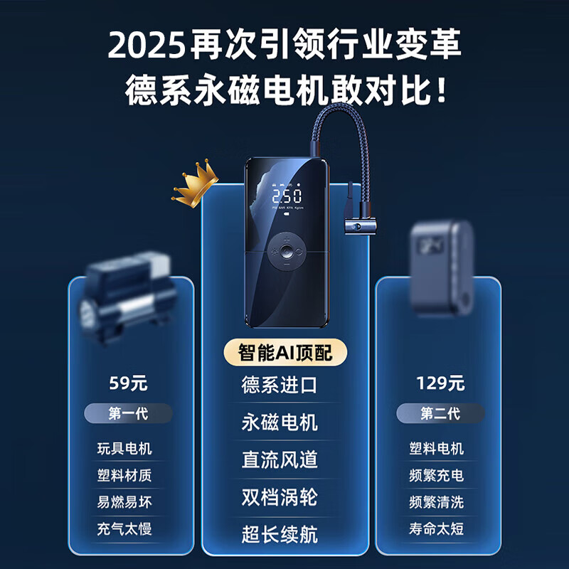 领臣(LINGCHEN)充气泵车载打气泵电动车轮胎补气自行车打气筒家用汽车智能测胎压