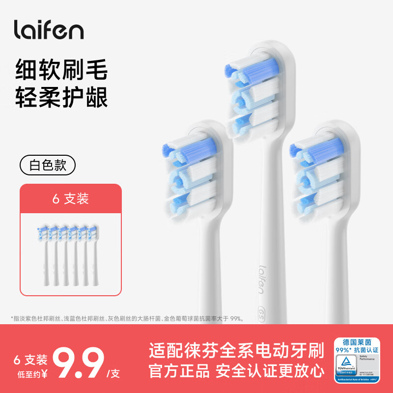 laifen徕芬电动牙刷原装刷头(ABS+POM材质) 6支 高效清洁(可用180天)