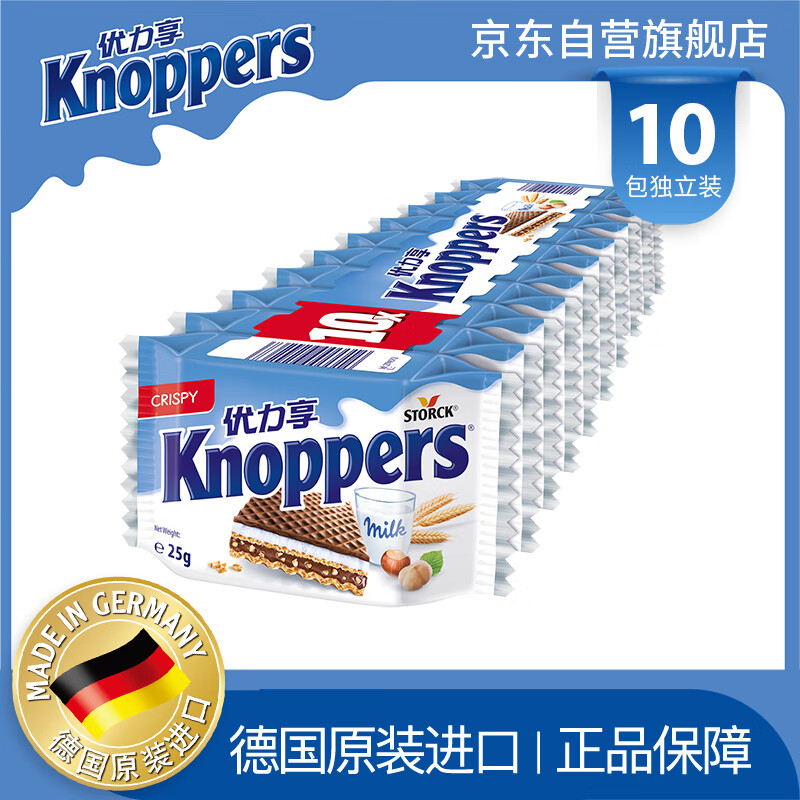 knoppers德国进口 优力享 牛奶巧克力威化饼干250g10片早餐代餐零食下午茶