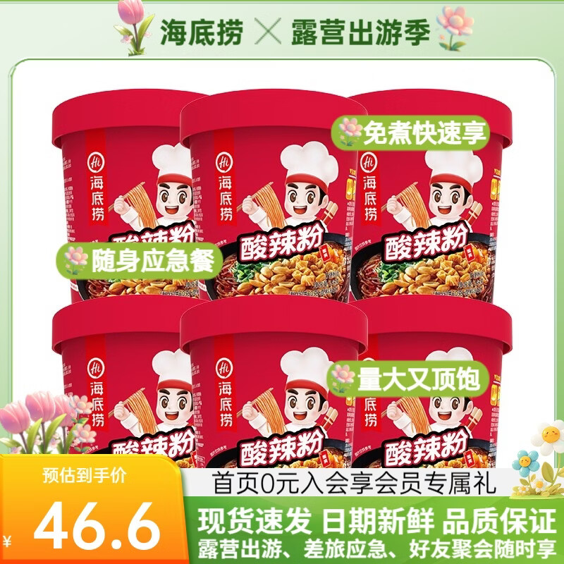 海底捞酸辣粉方便速食冲泡免煮米线夜宵粉丝早餐学生宿舍方便面零食食品 【加班熬夜来一桶】酸辣粉144g*6盒