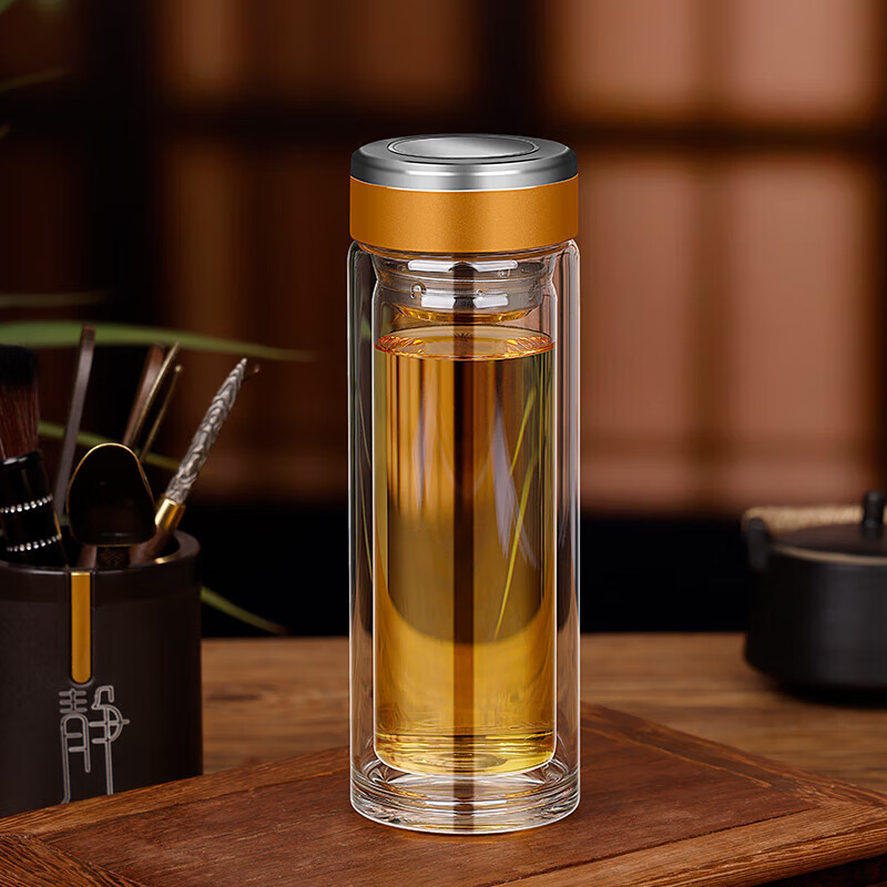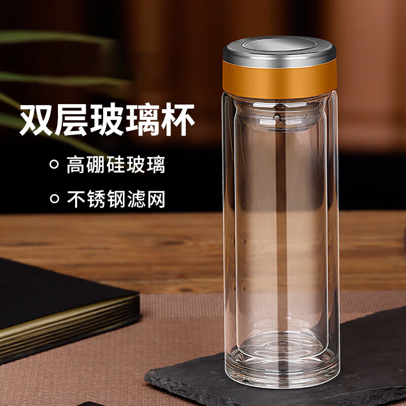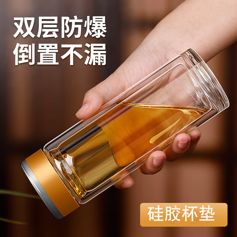 加厚商务玻璃水杯隔热双层玻璃杯茶水分离杯 经典盖千层中杯300ml1只