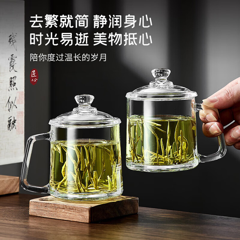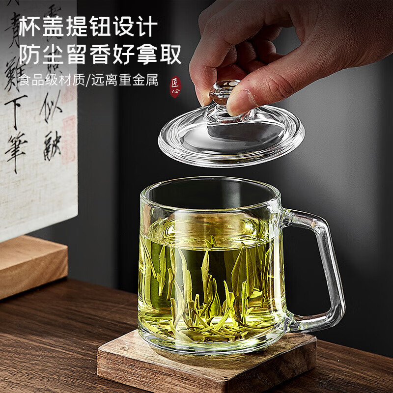带盖泡茶杯加厚耐高温大容量玻璃把杯待客家用喝茶水杯 加厚玻璃泡茶杯350ml