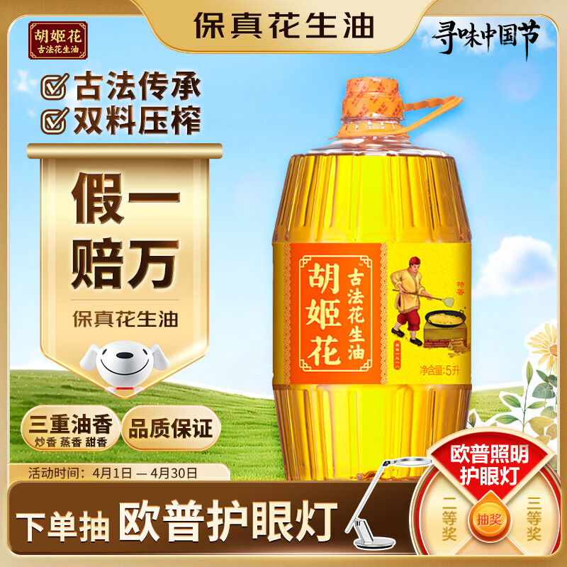 胡姬花 食用油【保真花生油】压榨一级 古法花生油5L(新老包装随机发货)