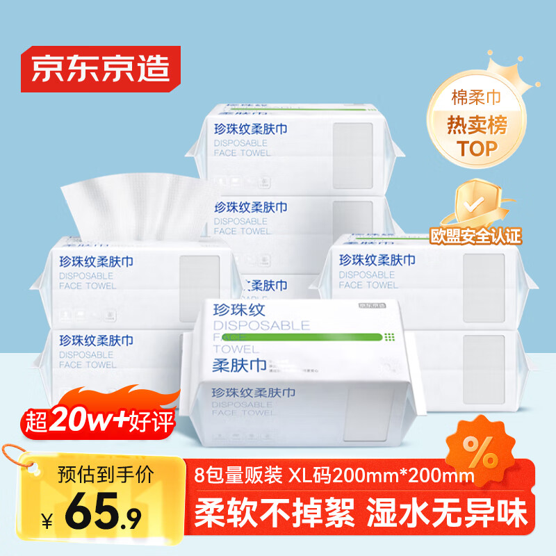 京东京造一次性洗脸巾720抽囤货装(90抽*8包)珍珠纹柔巾干湿两用擦脸巾