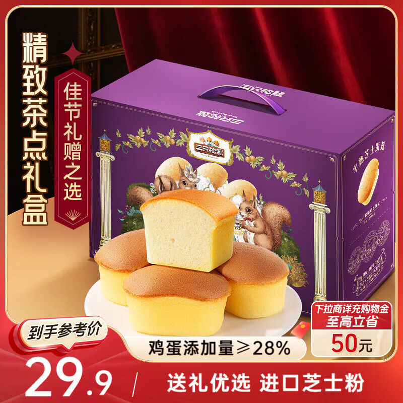 三只松鼠半熟芝士蛋糕800g 营养早餐吐司面包糕点点心零食中秋团购送礼