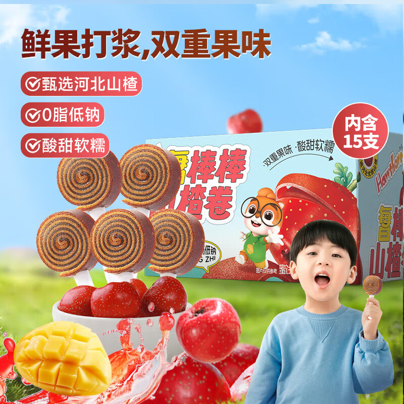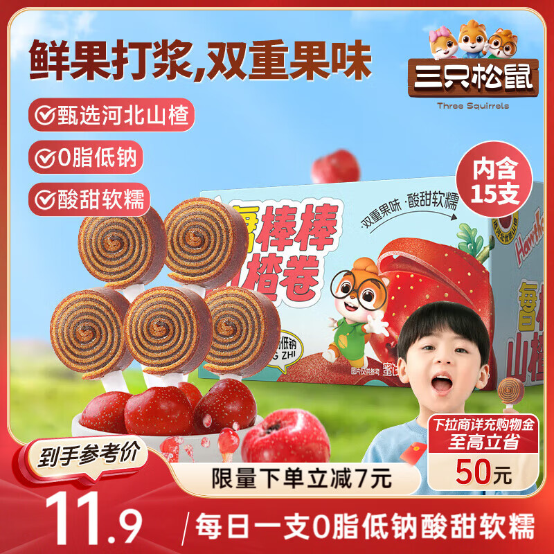三只松鼠每日山楂卷芒果味300g/15支 山楂糕棒棒糖蜜饯办公室儿童休闲零食