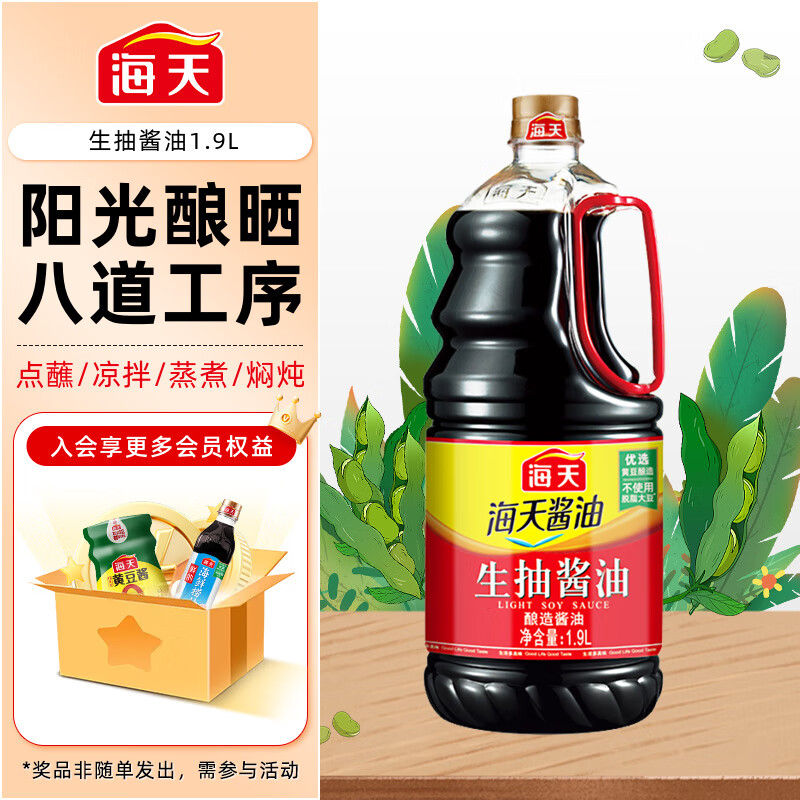 海天 生抽酱油1.9L 【酿造酱油】经典系列 原粒黄豆点蘸提鲜凉拌