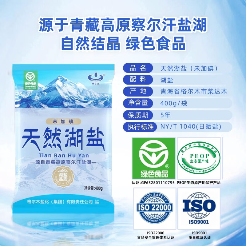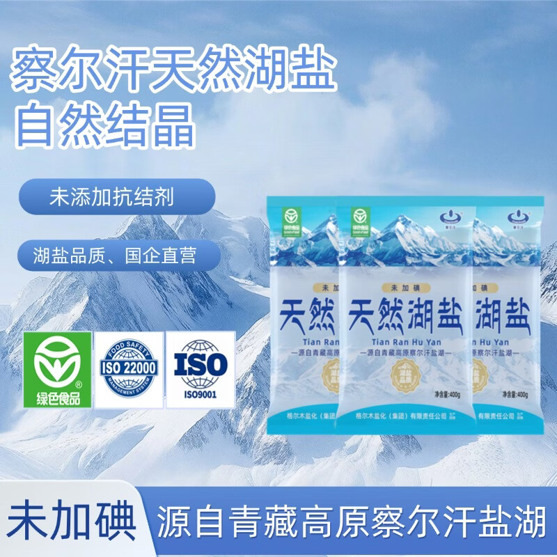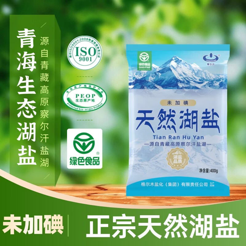 察尔汗绿色食品级天然湖盐未加碘青藏高原青海无抗结剂食用盐 绿色食品级天然湖盐400gX4袋