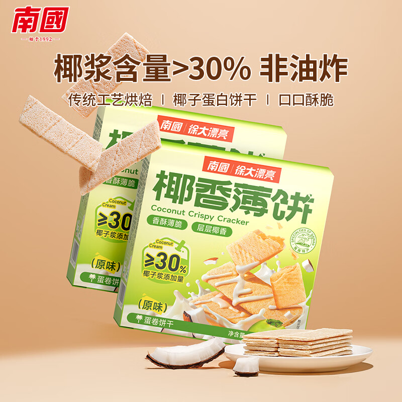 南国海南特产椰香薄饼干160gx2盒 椰子味休闲零食早餐
