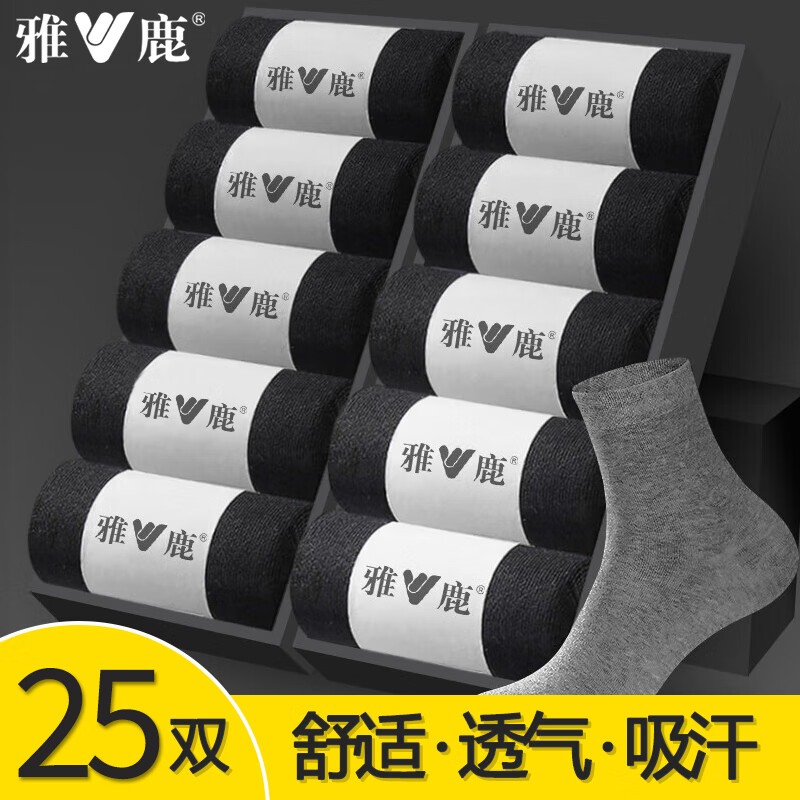 雅鹿袜子男中筒男士吸汗透气四季中筒商务袜夏季纯色中筒袜薄款 袋装混色 25双