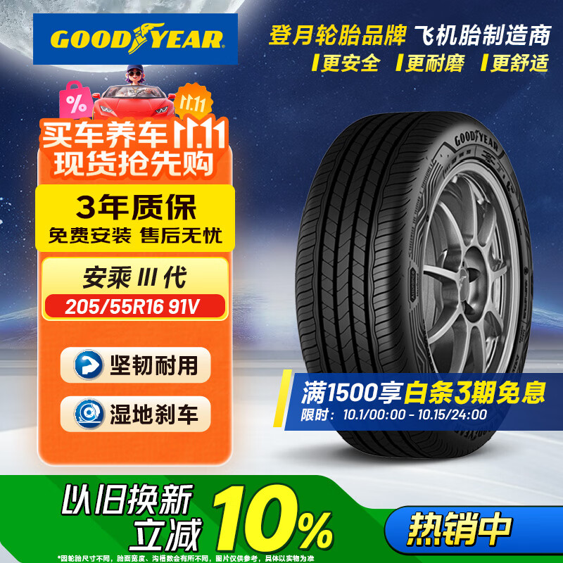 固特异(Goodyear)汽车轮胎 205/55R16 91V AMG 安乘三代 适配福睿斯/速腾/朗逸