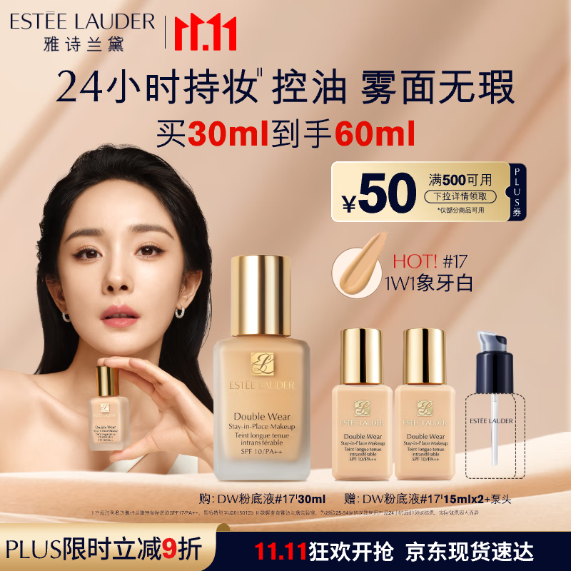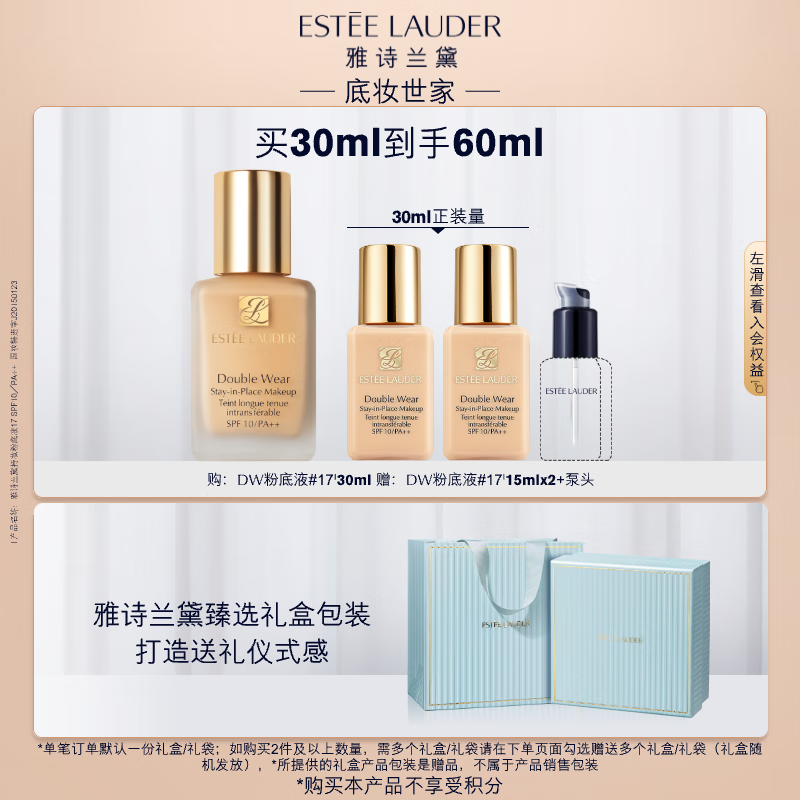 雅诗兰黛DW持妆粉底液17#象牙白(1W1)30ml控油遮瑕化妆品礼盒生日礼物