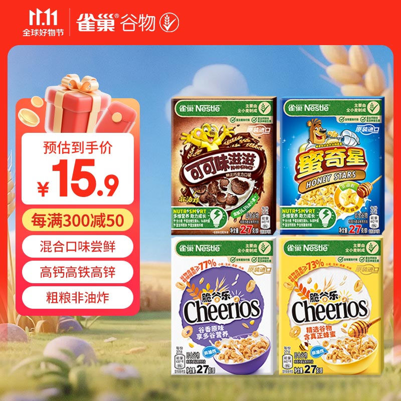 雀巢(Nestle)进口谷物迷你装108g混合味儿童零食儿童营养麦片即食全谷物非油炸