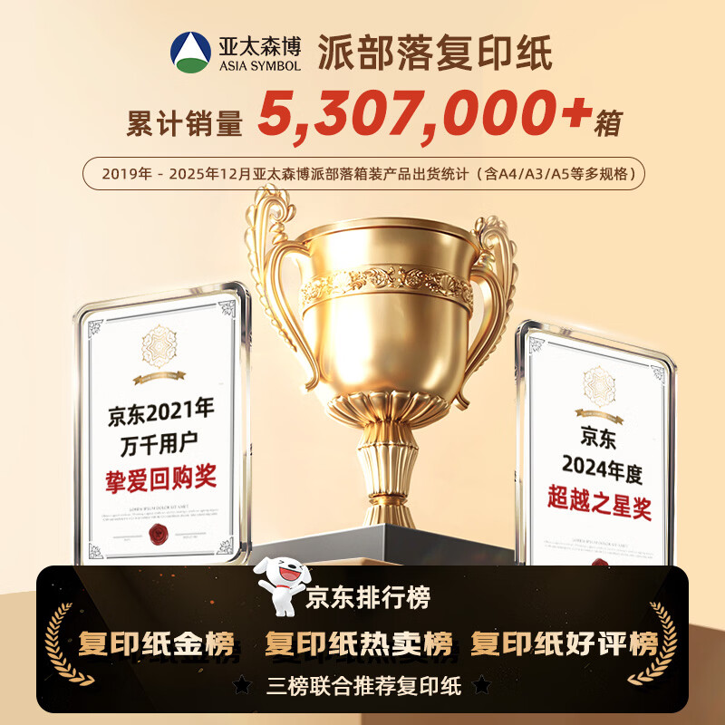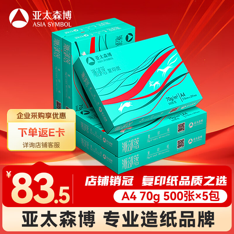 亚太森博派部落A4打印纸70g500张*5包顺滑不卡纸双面复印纸 高性价比 整箱2500张【店铺销冠】