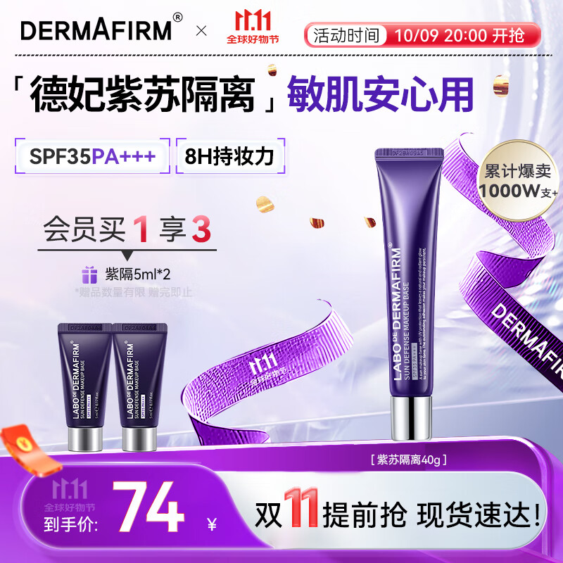 德妃(DERMAFIRM)紫苏隔离40gSPF35PA+++防晒霜妆前乳素颜霜遮瑕护肤品礼物