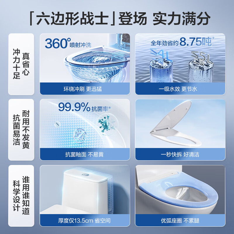 恒洁(HEGII)京东联名马桶S3 家用虹吸新版马桶513小户型坐便器DCF0300PT-305