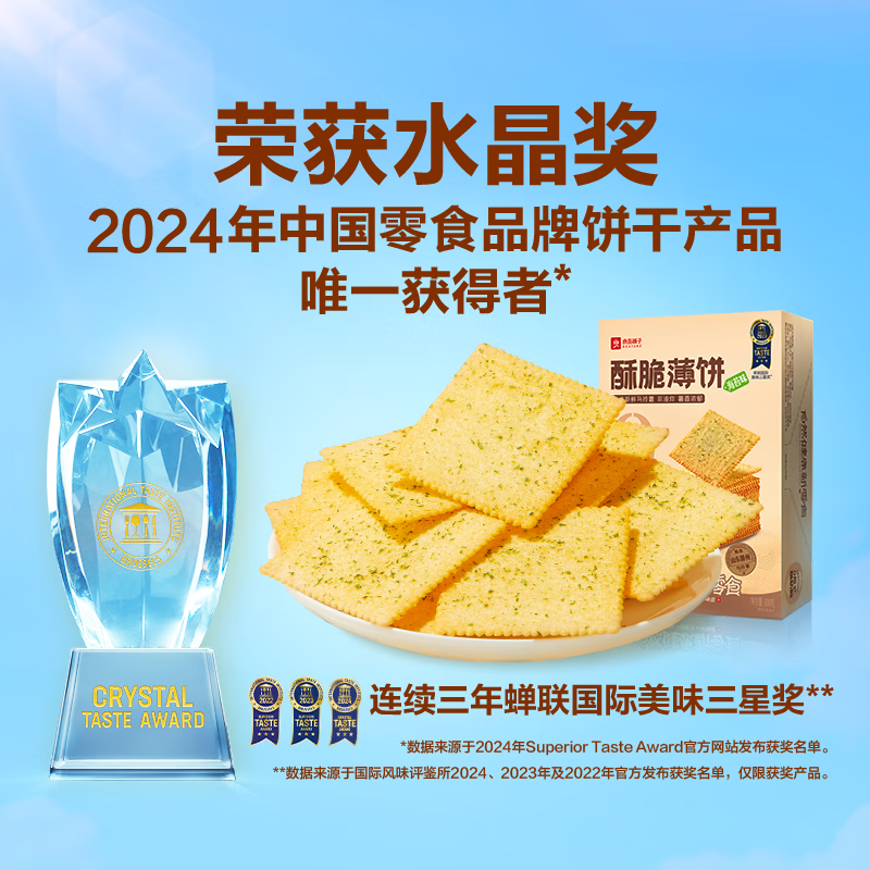 良品铺子酥脆薄饼海苔味早餐饼干儿童零食休闲零食食品年货小吃小零食300g