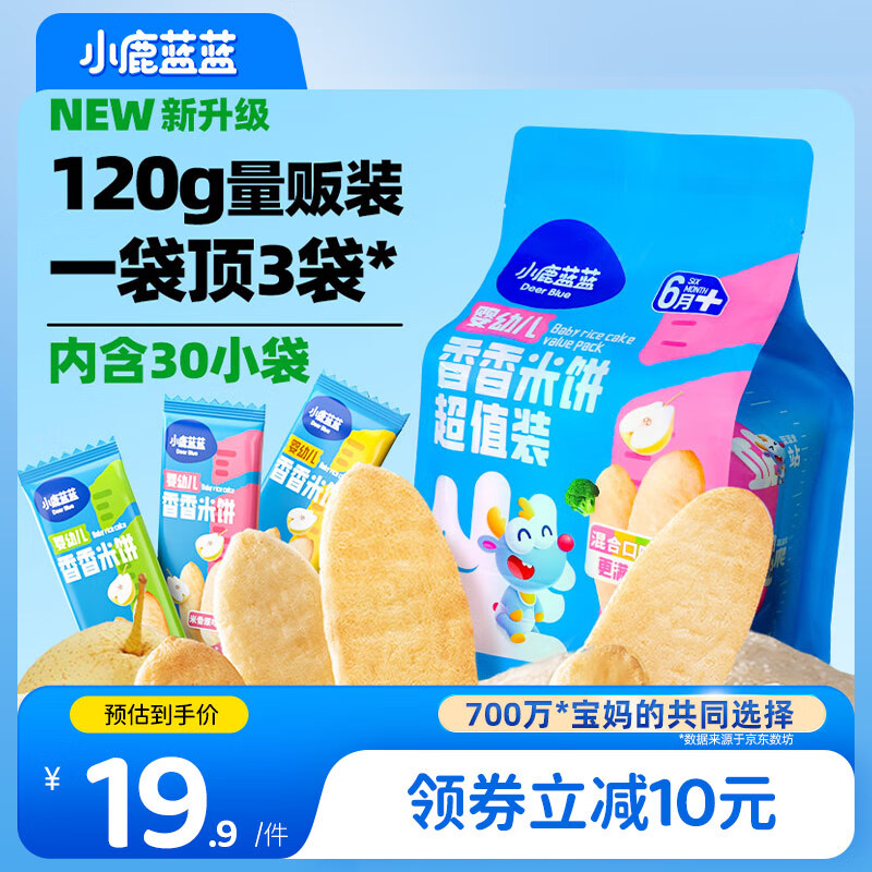小鹿蓝蓝热门商品婴幼儿米饼零食米饼3口味混合宝宝零食超值装120g(60片)