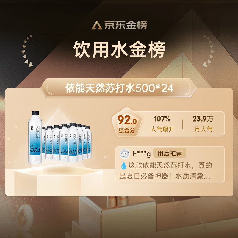 依能天然苏打水 无糖无汽无添加500ml*24瓶塑膜装 弱碱饮用天然水解渴