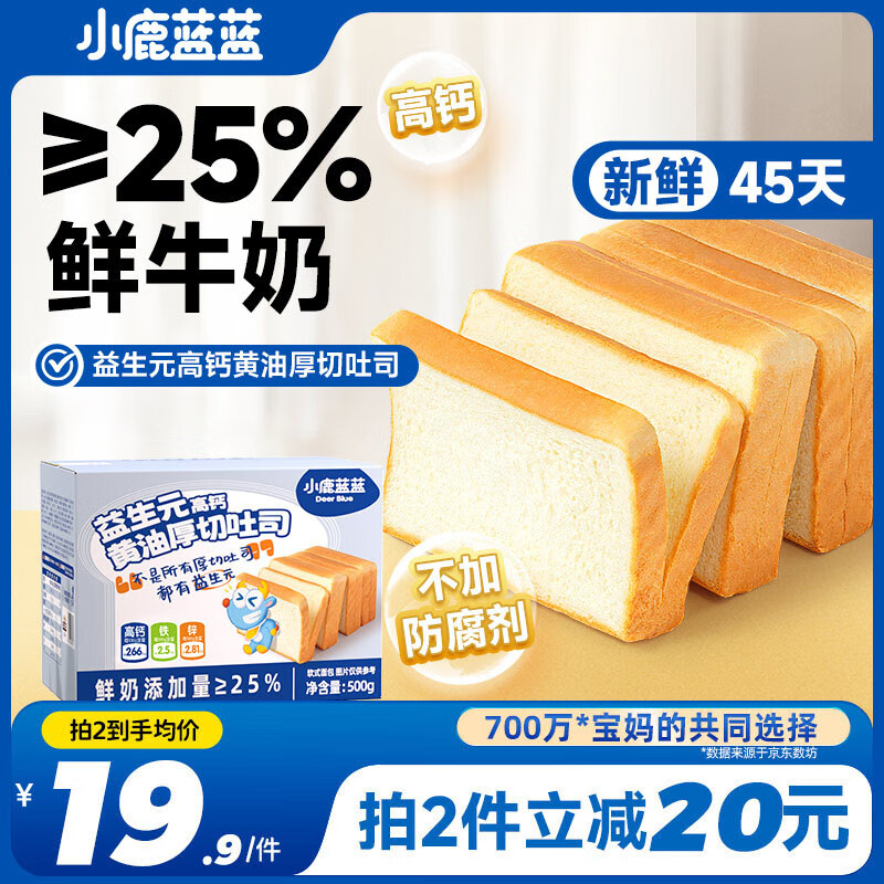 小鹿蓝蓝不加防腐剂厚切高钙黄油吐司儿童早餐零食儿童面包牛奶面包 500g