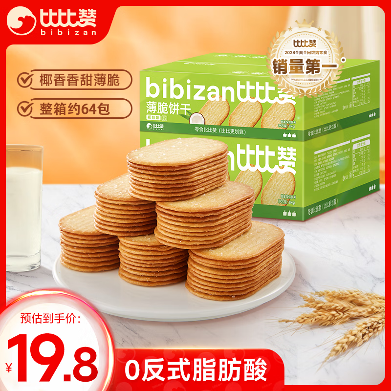 比比赞(BIBIZAN)椰奶味薄脆饼干1000g/箱早餐办公室休闲零食品代餐饱腹整箱2斤