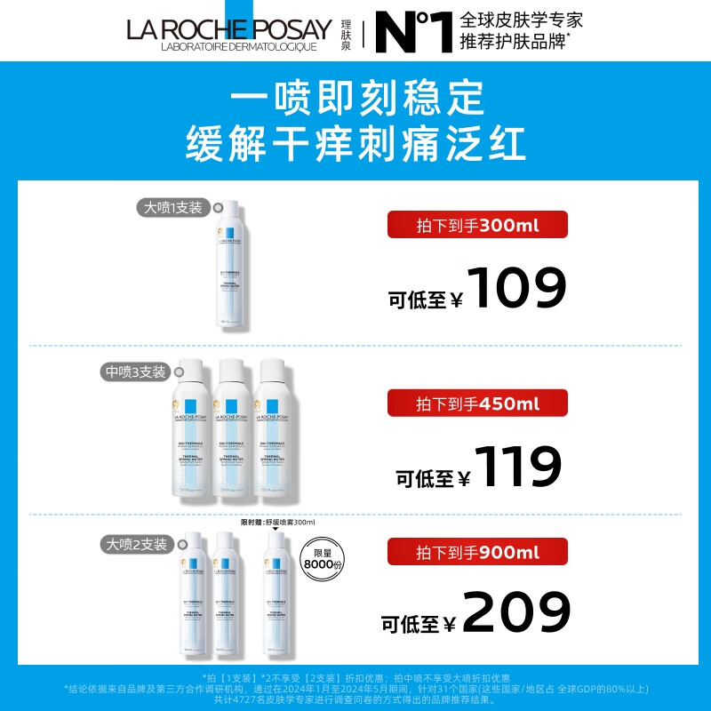 理肤泉舒缓干痒泛红喷雾300ml*2支温泉水修护爽肤水护肤品11.11抢先购