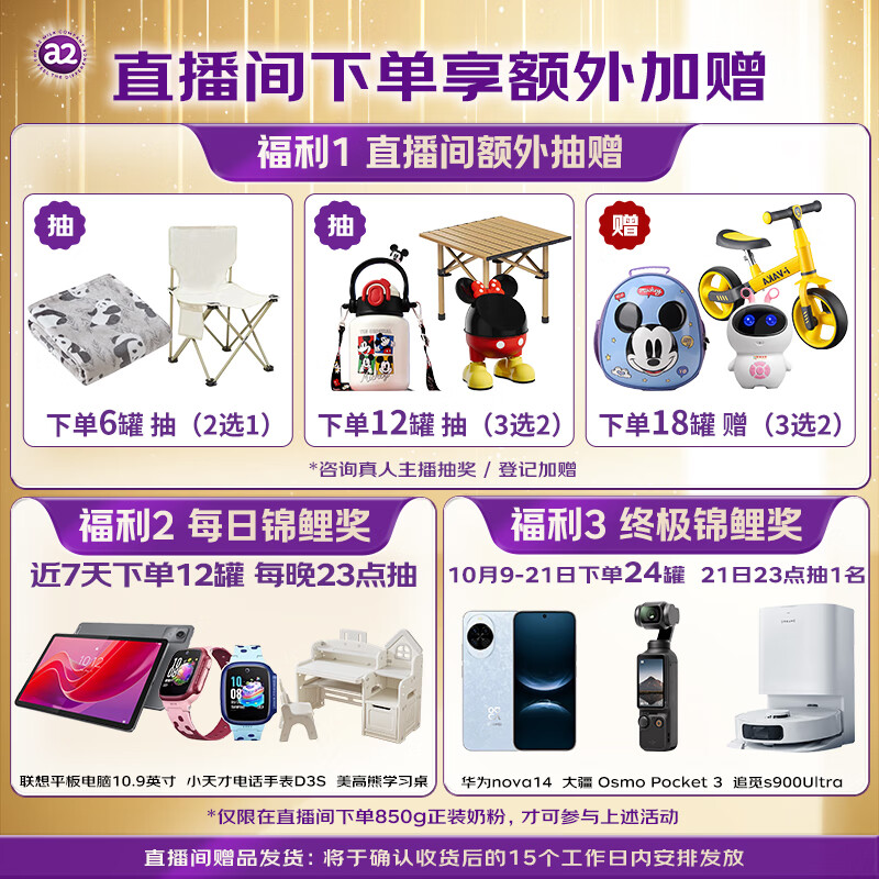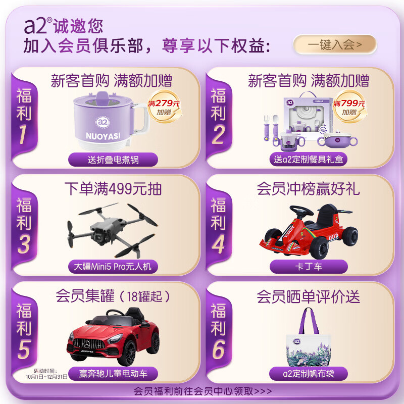 a2至初 3段婴幼儿配方奶粉1-3岁850g*2罐三段奶粉 含乳铁蛋白