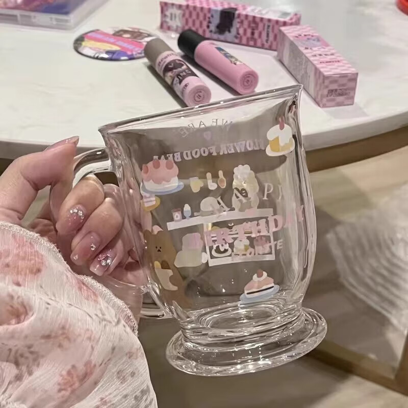 可爱卡通玻璃杯大容量水杯2025新款女杯子办公室家用牛奶杯奶茶杯 蛋糕小熊玻璃杯 420ml 1只