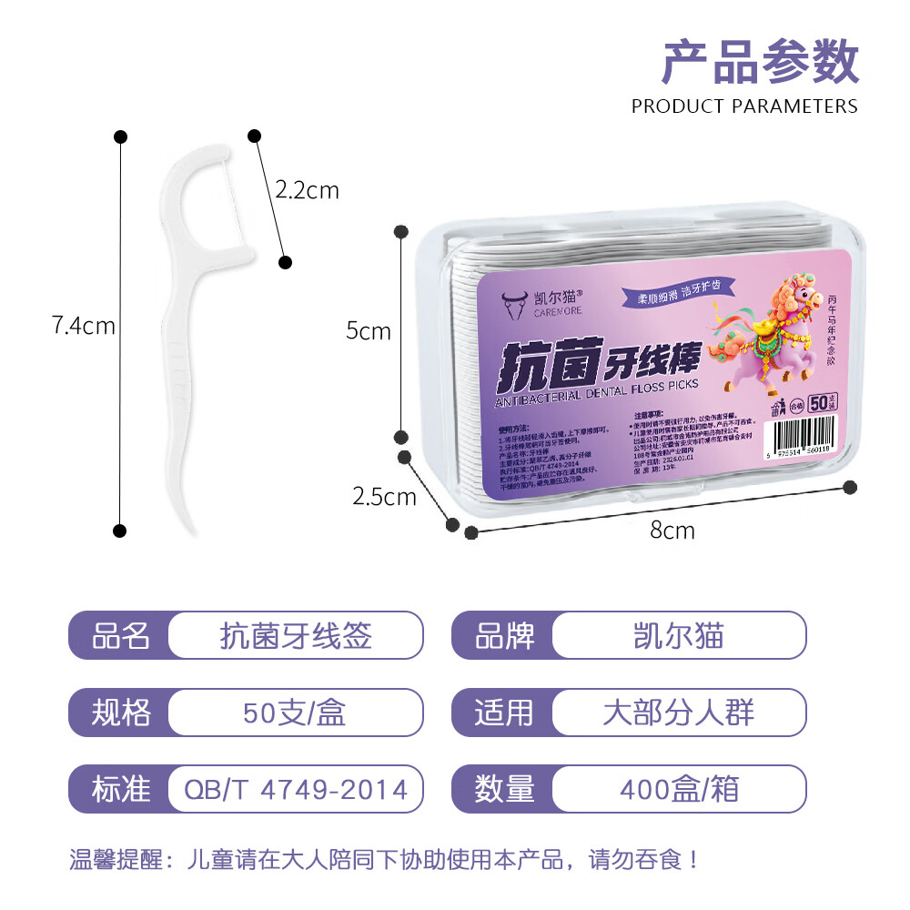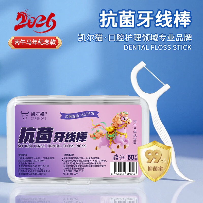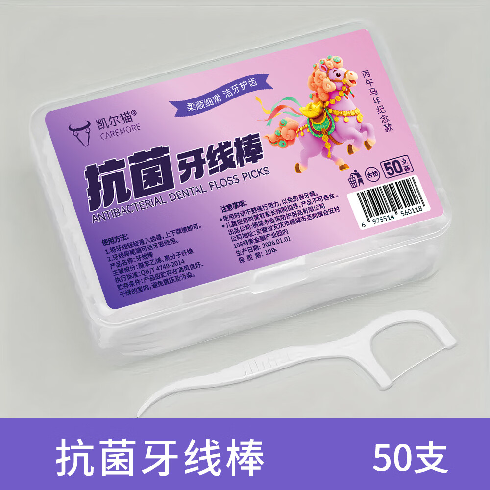 【京东物流】马年限定抗菌高弹力牙线棒超细一次性牙签便携牙线 【品质升级】丙午马年限定1盒50支