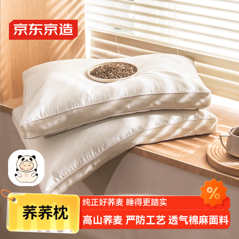京东京造 经典荞荞枕 100%荞麦壳填充透气高度可调花草枕头枕芯单只装