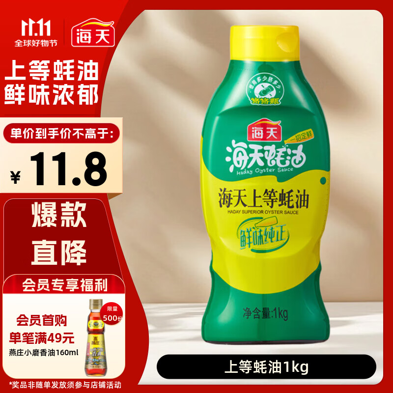 海天 蚝油1kg 上等调料 挤挤装 上色提鲜增香 家用调料 点蘸捞拌焖煮