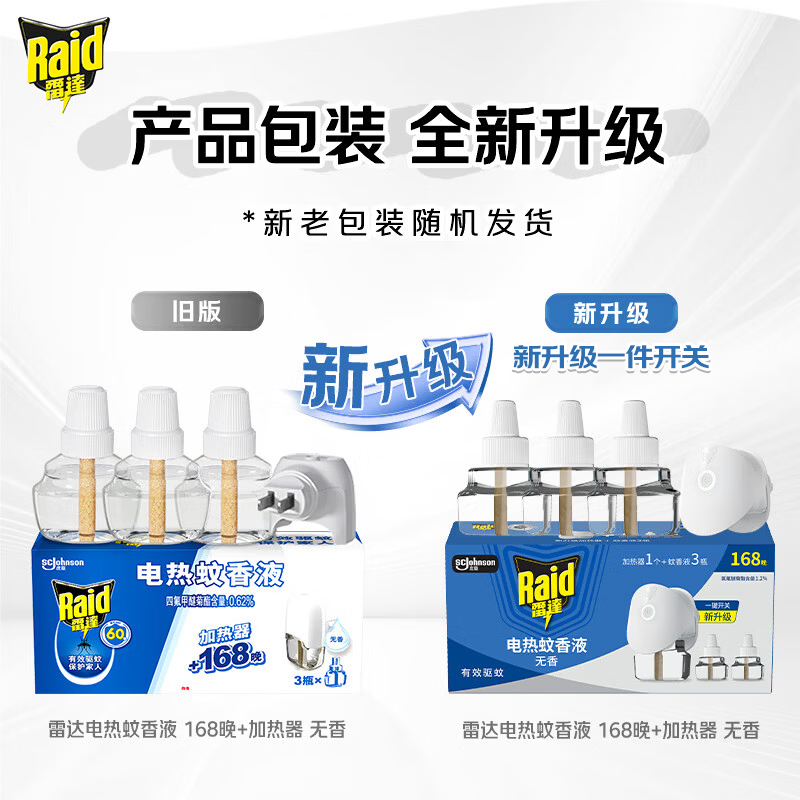 雷达(Raid)电热蚊香液 168晚3瓶装 +1无线加热器无香型 驱蚊用品
