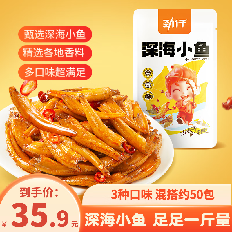 劲仔小鱼仔送礼零食小鱼干 混合口味 500g(约45-50小包)