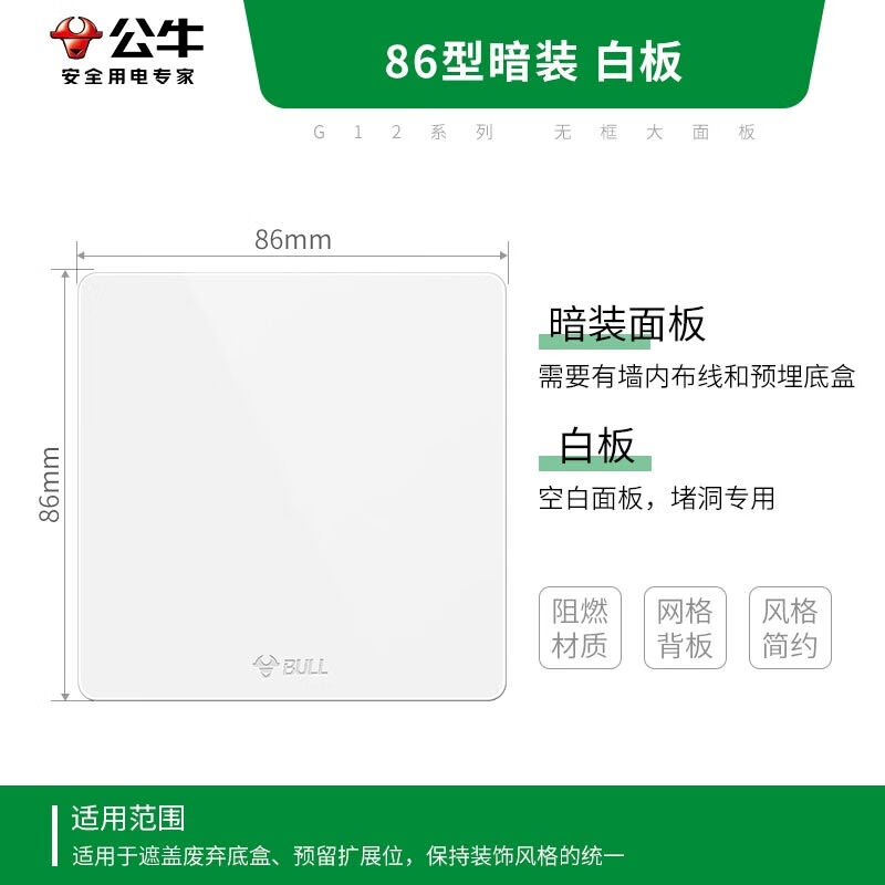 公牛(BULL)空白面板 G12系列 防溅盒面板白板86型面板 G12B101 象牙白