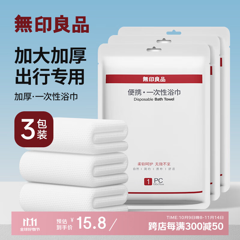 无印良品一次性浴巾珍珠纹旅行加厚大号酒店便携旅游家用浴巾3包装