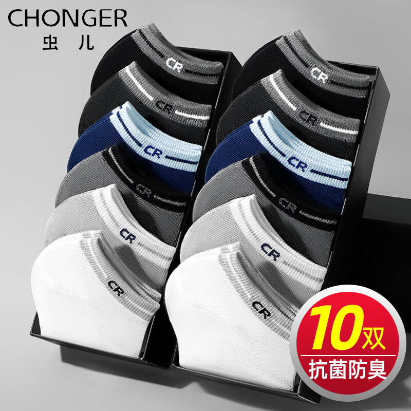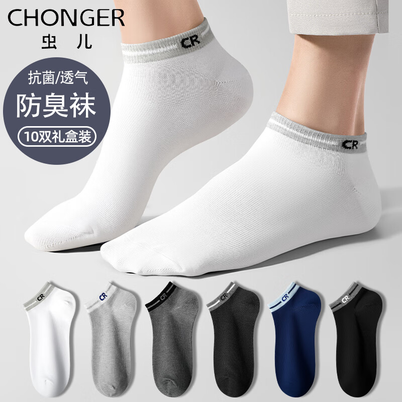 虫儿袜子男士短袜春秋纯棉7A抗菌防臭船袜吸汗透气耐磨冬天隐形商务袜 【7a抗菌防臭袜】混色20双 均码