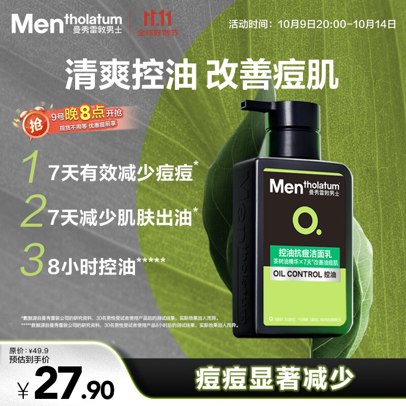 曼秀雷敦男士控油洗面奶150ml去油去黑头控油抗痘洁面礼物男