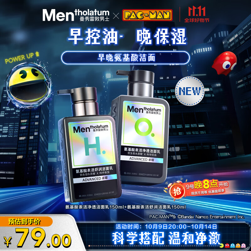 曼秀雷敦男士小黑盾系列氨基酸控油保湿洁面乳150ml*2礼物送男友