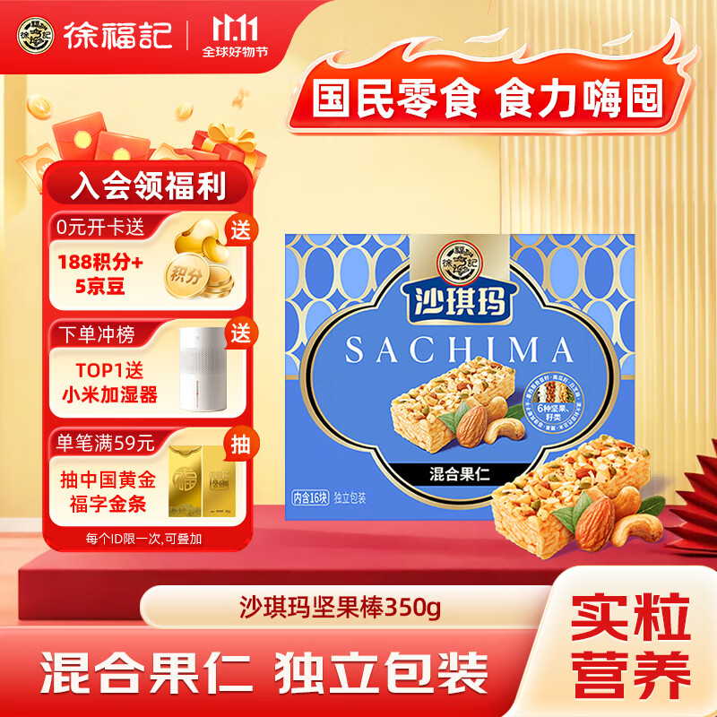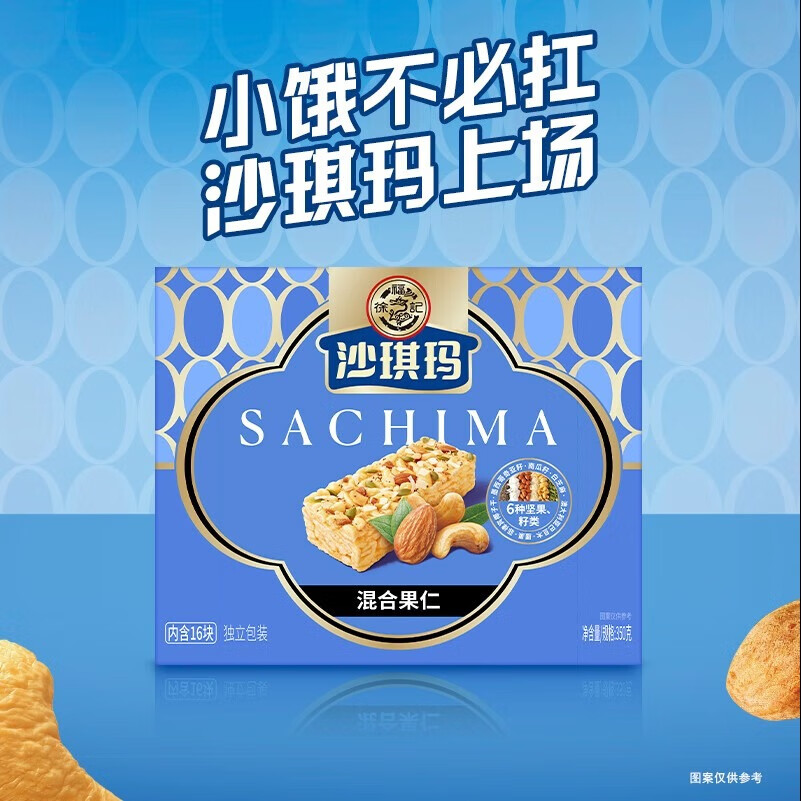 徐福记金标风味混合果仁沙琪玛盒装350g 休闲零食约16枚