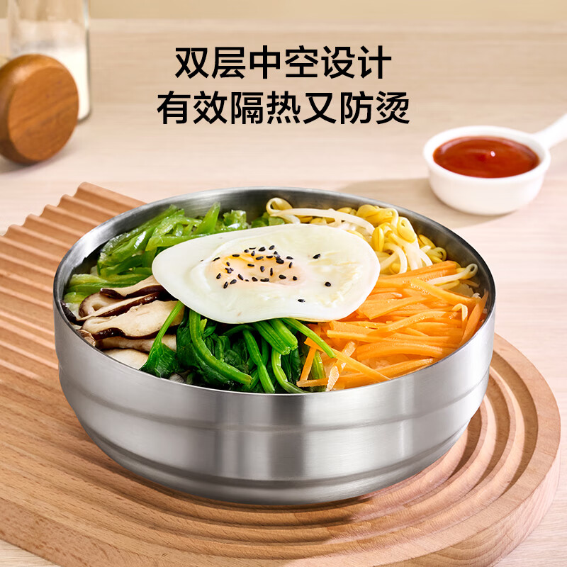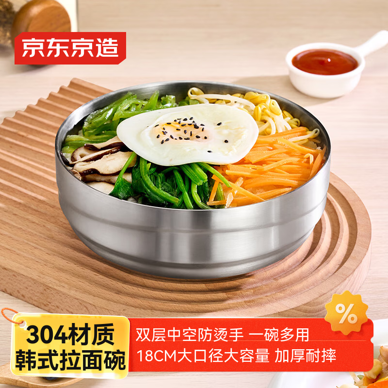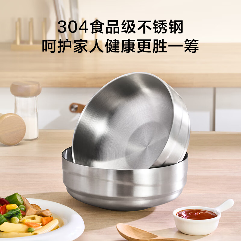 京东京造304不锈钢碗 大汤碗双层隔热餐具面碗18CM拉面碗沙拉碗