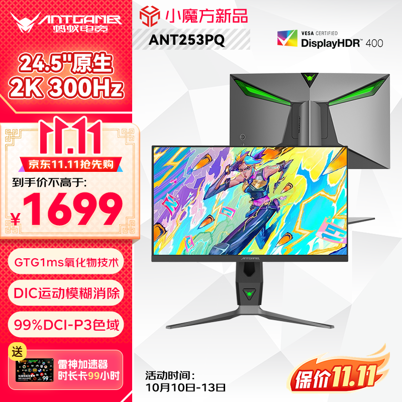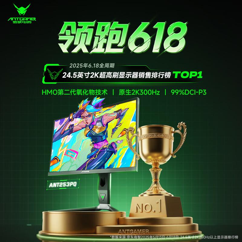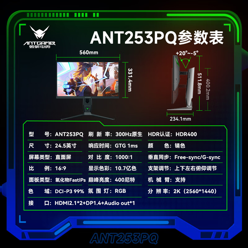 ANTGAMER蚂蚁电竞 24.5英寸2K300Hz显示器 氧化物FastIPS 10Bit HDR400 1msGTG DIC技术护眼低蓝光ANT253PQ