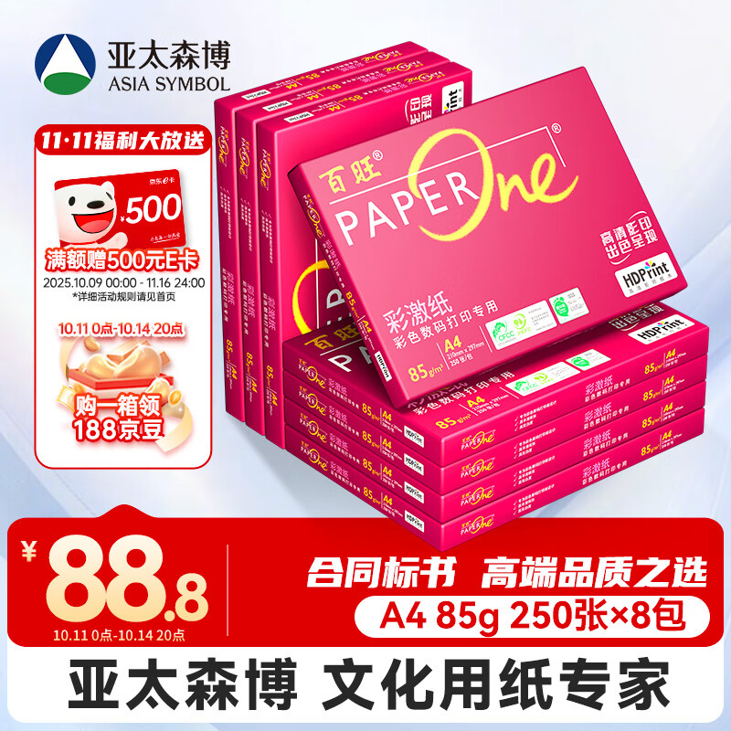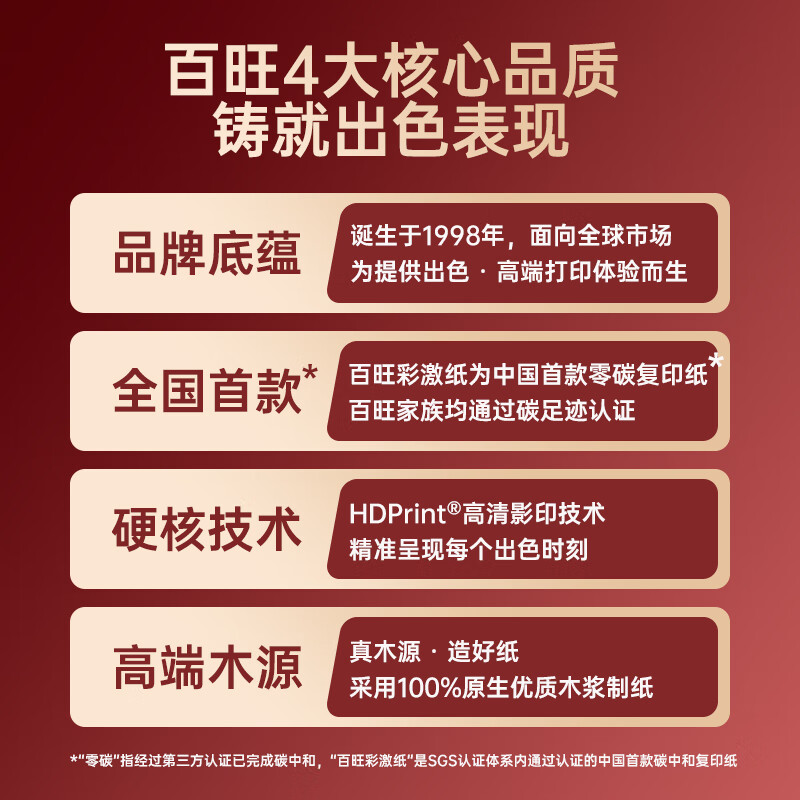 百旺至尊款红百旺 A4打印纸 85g250张*8包 复印纸 高清影印技术 碳中和认证 2000张【专业造纸厂牌】