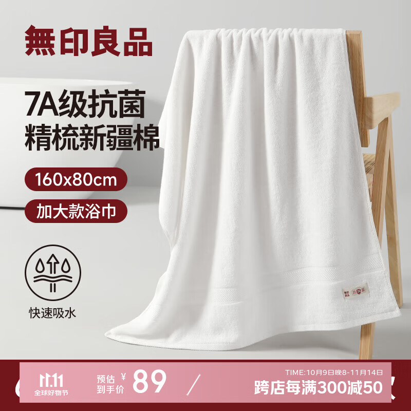 无印良品浴巾7A级抗菌加大加厚100%纯棉620G新疆棉五星级酒店大浴巾白色